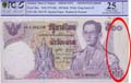 LOT NO: 5485 Starting: THB 4000 Approx: 105 Error note; Series XIV 100b. P#97 signed 62, error mismatched Arabic & Thai numerals, Arabic numerals #5A 4905328 whilst Thai numerals #5ก 4005328, UNC.(1) ธนบัตรตลก รุ่นที่ 14 ชนิดราคา 100 บาท ลายเซ็น ธารินทร์-วิจิตร ตลกเลขไทยและอารบิคต่างกัน เลขอารบิคเป็น #5A 4905328 ส่วนเลขไทยเป็น #๕ก ๔๐๐๕๓๒๘, UNC (1) |